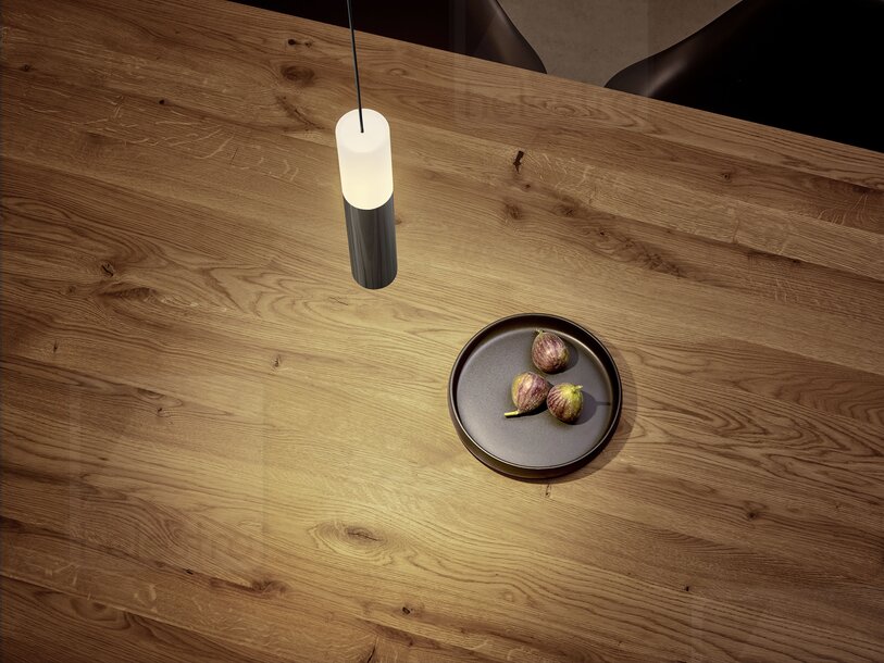 La lumière indirecte est répartie uniformément par le diffuseur en verre satiné supérieur, tandis qu'un réflecteur assure un éclairage direct homogène vers le bas.