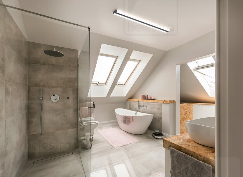 IP44 - protégé contre les projections d'eau, miroir et plafonnier pour salle de bains, couleur de lumière commutable entre 3000 K et 4000 K